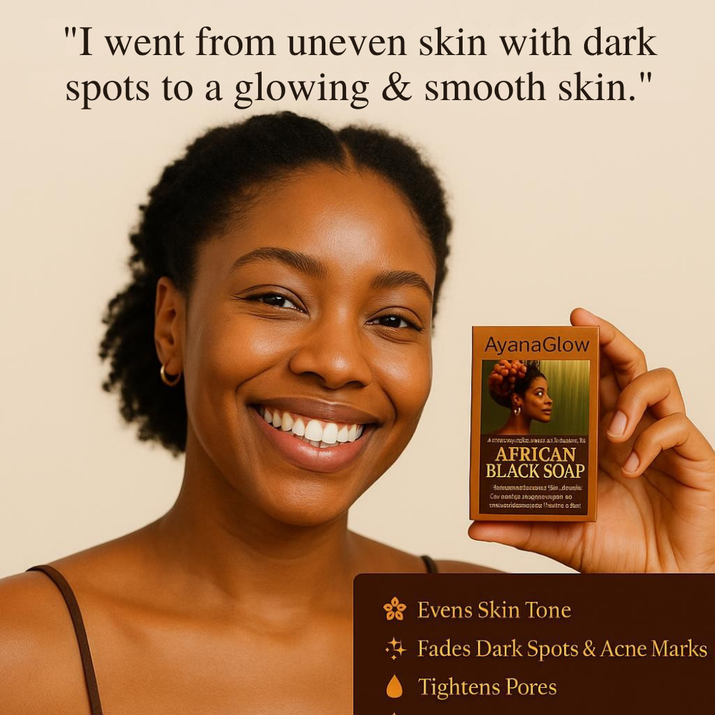 The first African Black Soap formulated specifically for Black skin struggling with stubborn dark spots and hormonal breakouts. Our MelanoBalance™ formula stops the inflammation that triggers hyperpigmentation while clearing acne—without the harsh chemicals that darkened your skin before. Authentic West African Plantain Ash gently purifies while Raw Shea Butter simultaneously restores moisture. Safe for sensitive, melanin-rich skin. Visible results in 7-14 days.
